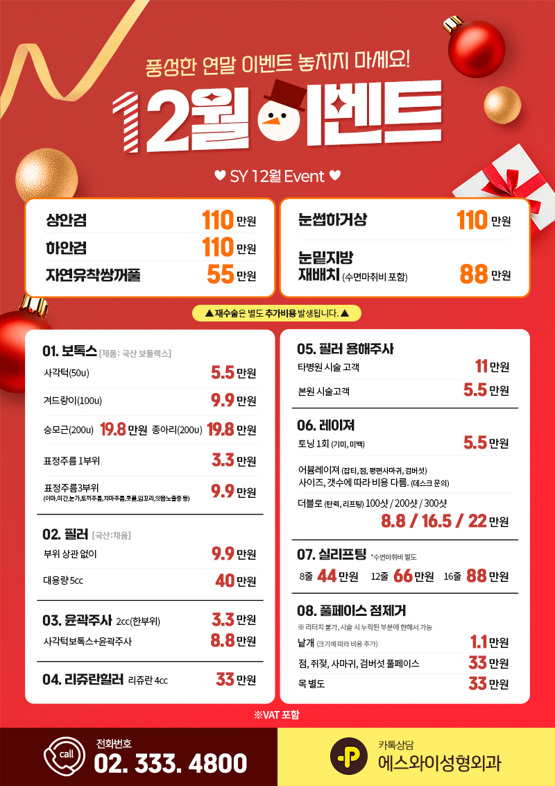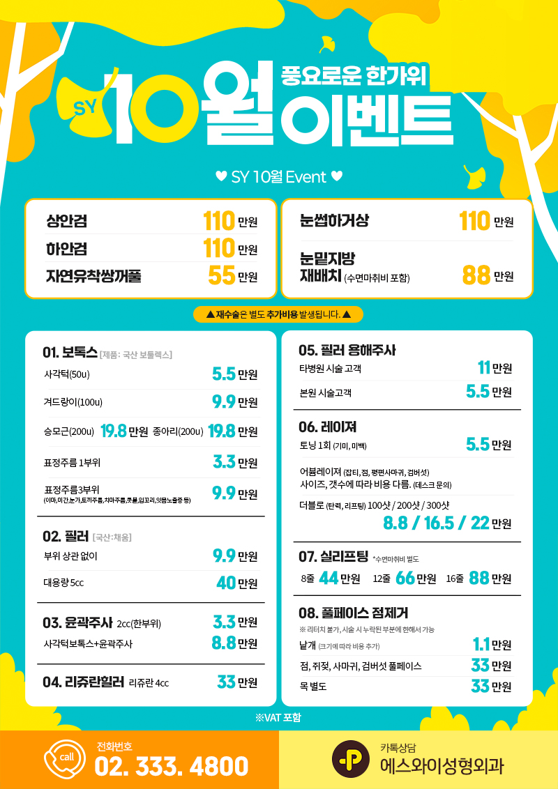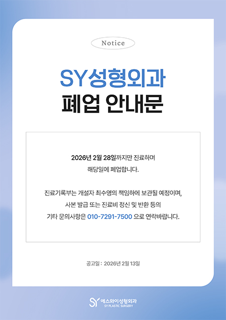 에스와이(SY)성형외과의원 사업자등록번호: 723-01-01773 대표 : 최수영